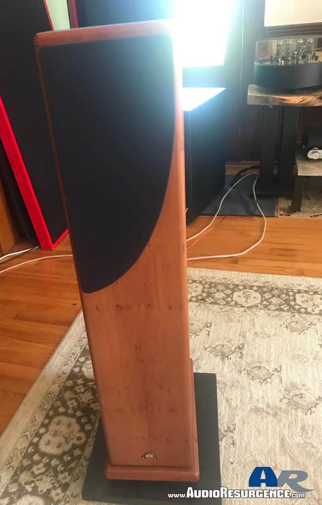 The elegant cabinet design of the Castle Acoustics Harlech and its curved front grills make this speaker instantly recognizable, at least if you’re English, and over 40! This bi-amp / bi-wire capable loudspeaker which sports Kevlar woofers, soft-dome 1.25″ tweeters, and a unique twin-pipe quarter-wave bottom port, was entirely hand-made in the UK, with all manufacturing processes taking place under the same roof.