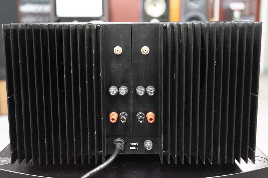 - left and right output jacks (5 way binding posts)