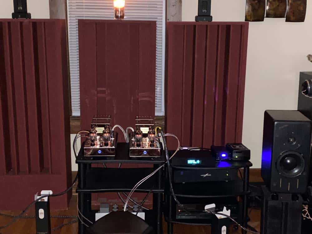 While the Ars Sonum is very good with the Merlins, and I’m happy to be able to check another box, there are better amps out there to drive Merlin speakers. Enter the Audio Mirror SET45 monoblocks with the fabled Russian 6C33C power tubes.