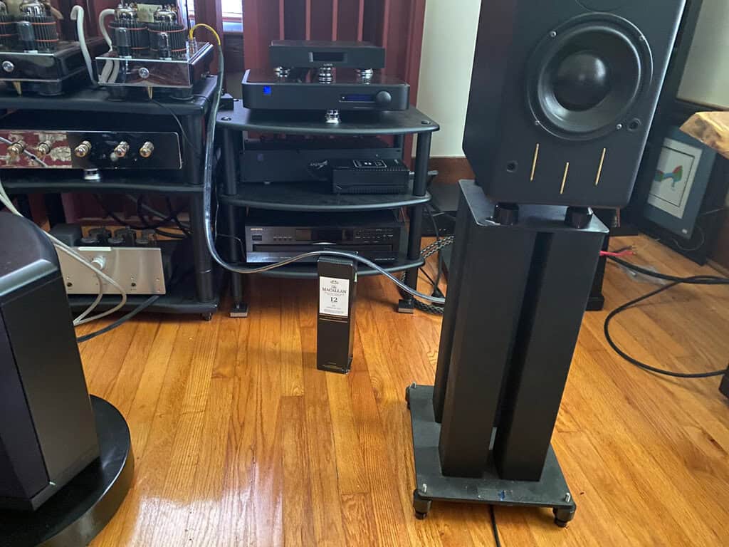 I bought my first pair of the smaller stand-mounted TSM ‘Black Magic Edition’ (BME) about 6 years ago when I was running a pair of Tyler Acoustics D20 speakers in the main system. The Tyler’s were big speakers and I could never get them to fully disappear, so I was itching for something less imposing and more transparent.
