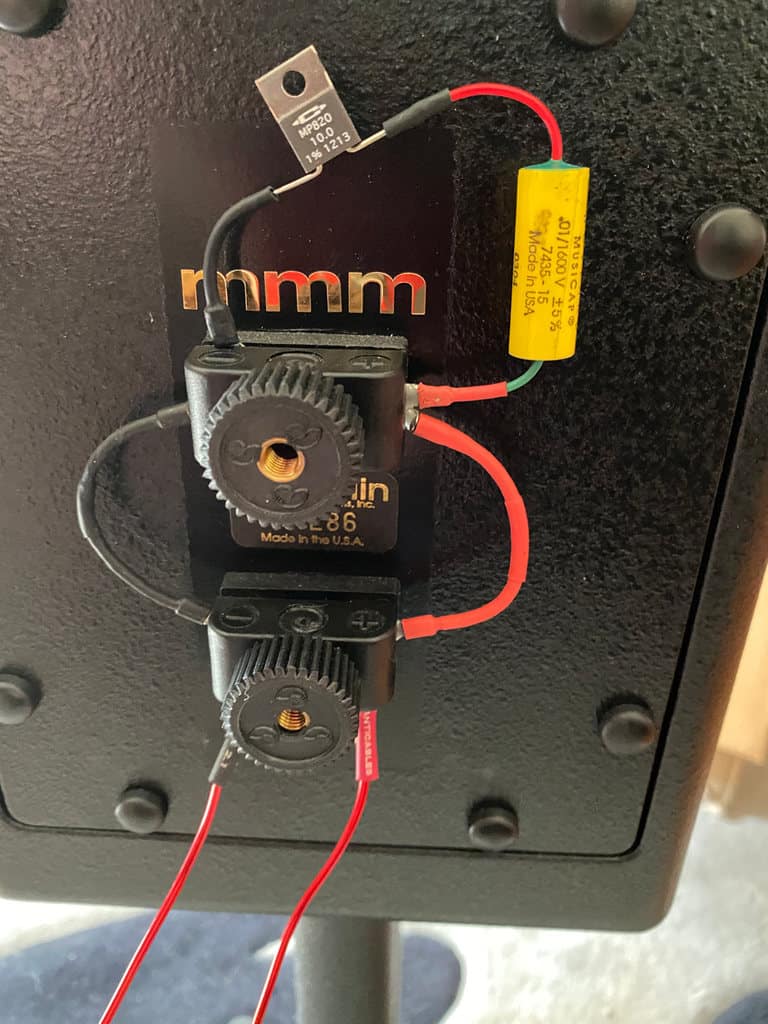 As for the TSM MMM BME (Black Magic Edition) of the TSM series, information is somewhat limited as to the true variation on standard specifications but features commonly associated with the BME include upgraded crossover components, wiring, and external RC components. Various sets of RC Networks were included when I bought my first pair of TSM MMM BME speakers, one for bi-wire and one for single-wire use. They did not include the Master RC networks, a $495 addition, so I went ahead and purchased the Master RC from Rick at Signature Sound in NYC. The Master RC takes these speakers up yet another notch, but I can’t honestly say I heard a $495 improvement.